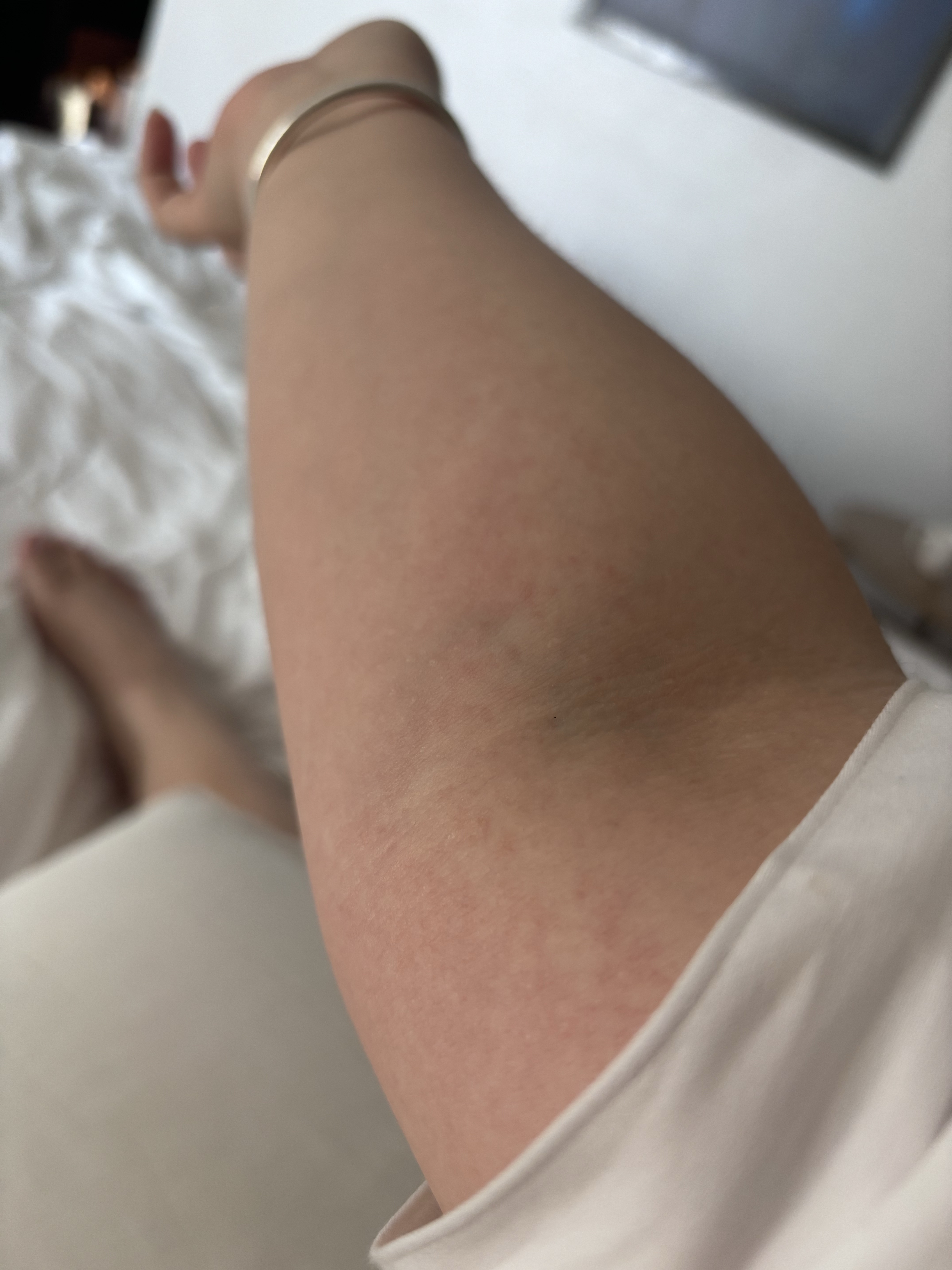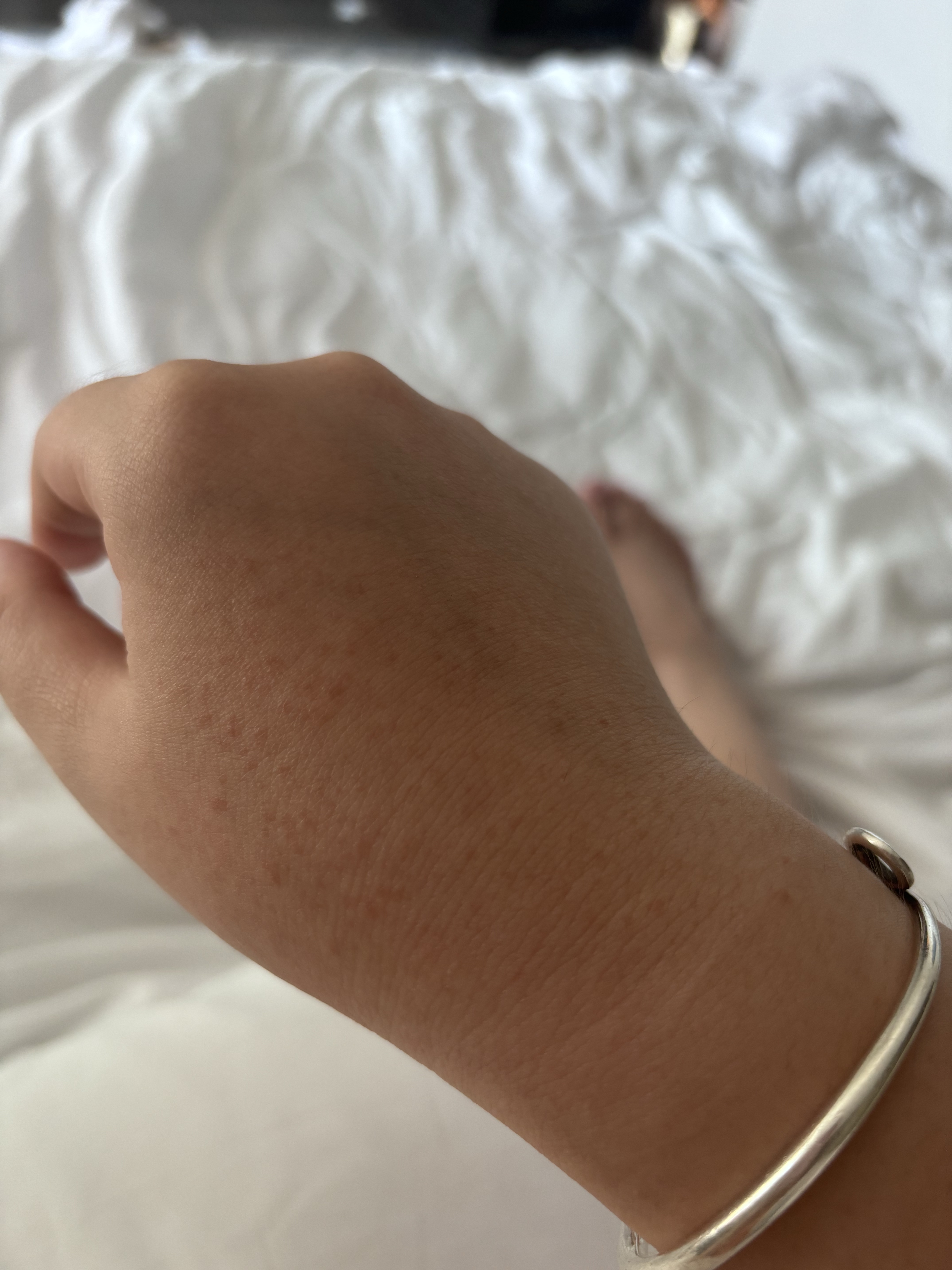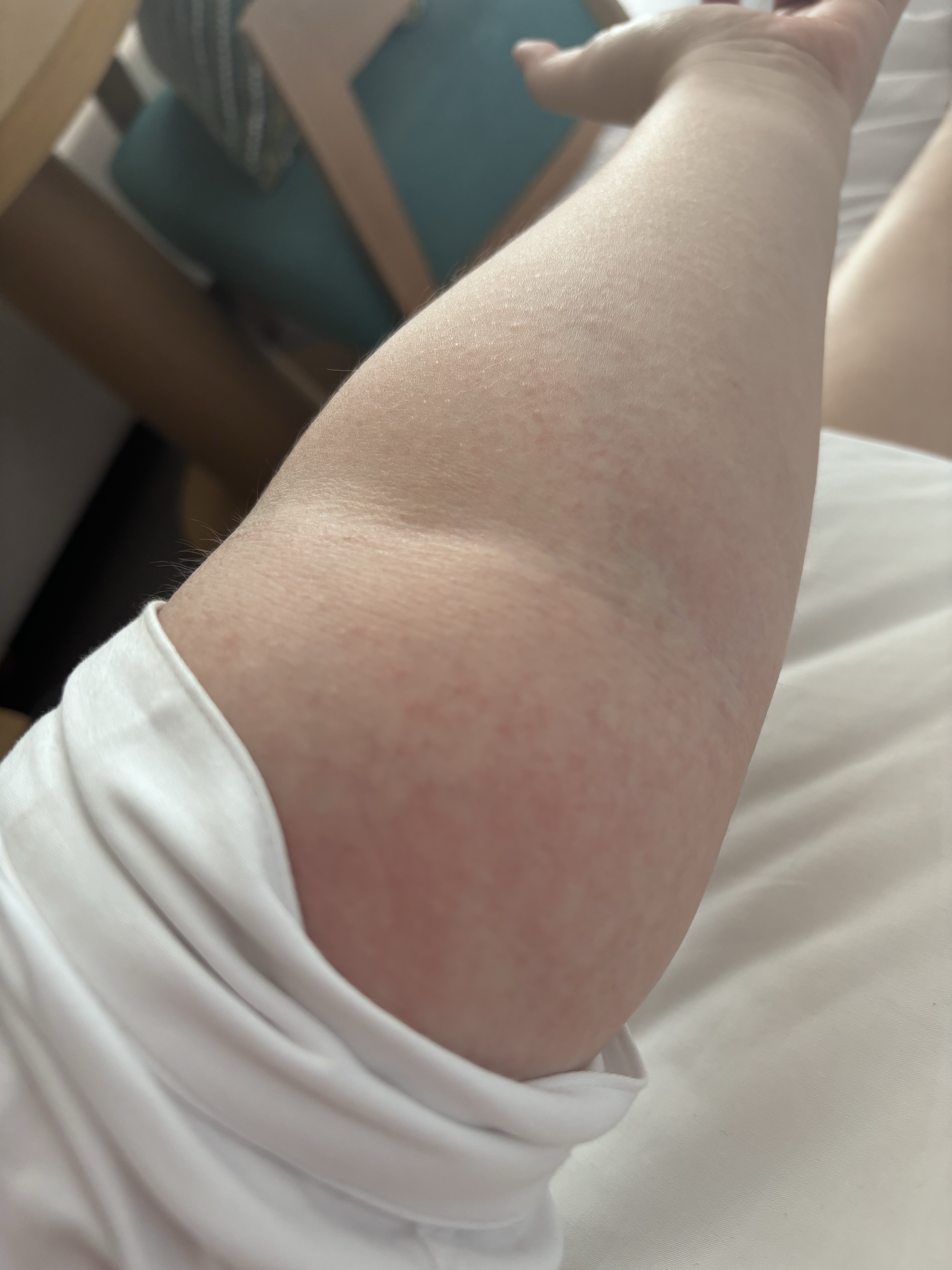 - Bắt đầu ngứa da, nổi mẩn đỏ, tôi đã khám bác sĩ da liễu được vài ngày nhưng vẫn không thuyên giảm mà da cũng khô và rát hơn