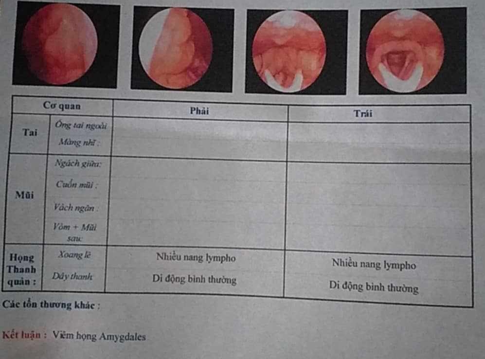 Chào bác sĩ,cháu đi nội soi được bt là bị viêm amidan kèm nhiều nang lympho,cháu lên mạng tìm hiểu thì ko rõ nang lympho khi bị amidan là j và có nguy hiểm ko ạ? . Cháu uống thuốc nhưng bị tái lại và vẫn còn các triệu chứng như : nuốt vướng đôi khi rát ,nổi hạch dưới cằm và cổ làm cháu rất lo ngại mắc phải các bệnh lí khác ngoài viêm amidan Bên dưới là hình ảnh nội soi của cháu .