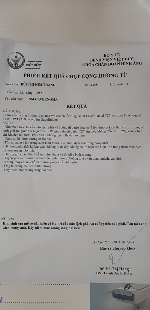 Hiên tại sau mổ caveron dc 1 năm đi khám có kết quả sau mong bác sĩ tư vấn