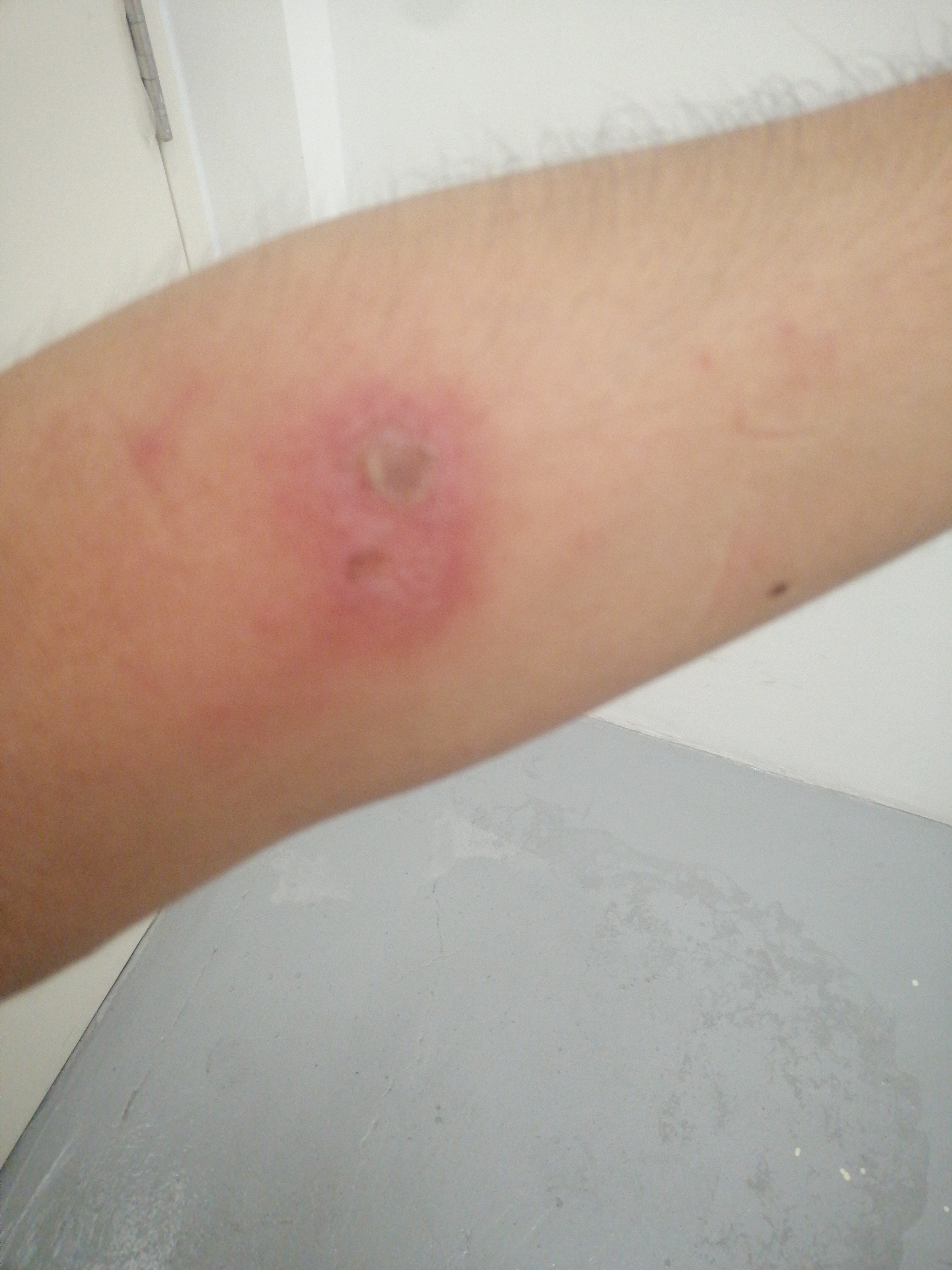Biểu hiện do dịch tiết côn trùng m bạn bôi fucidin H nhé