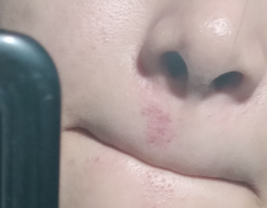 cháu bị xăng dính lên mặt nên lập tức rửa nước và sữa rửa mặt nhưng lại xuất hiện một vùng nhỏ gần nhân trung bị đỏ sẫm tím màu không biết nó có tự lành không hay làm sao để nó lành ạ