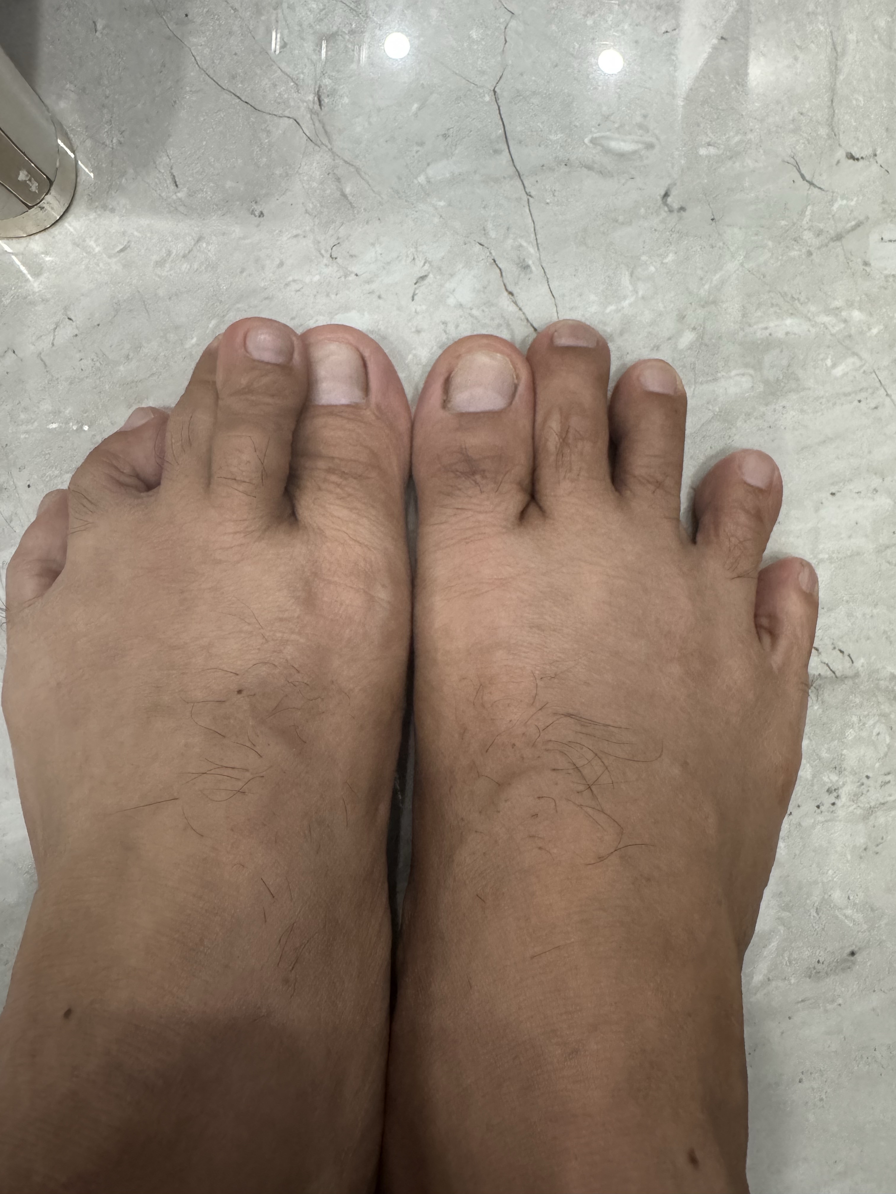 -Tội bị nóng rát bàn chân, lúc trước bị dưới bàn chân, hôm nay bị ở bên trên, ko bị liên tục, bị từng cơn, tối ngủ ko có bị. -ko ngứa, ko đỏ, ko dị ứng -Mới bị 3 ngày nay -Chưa đi khám ở bv nào cả