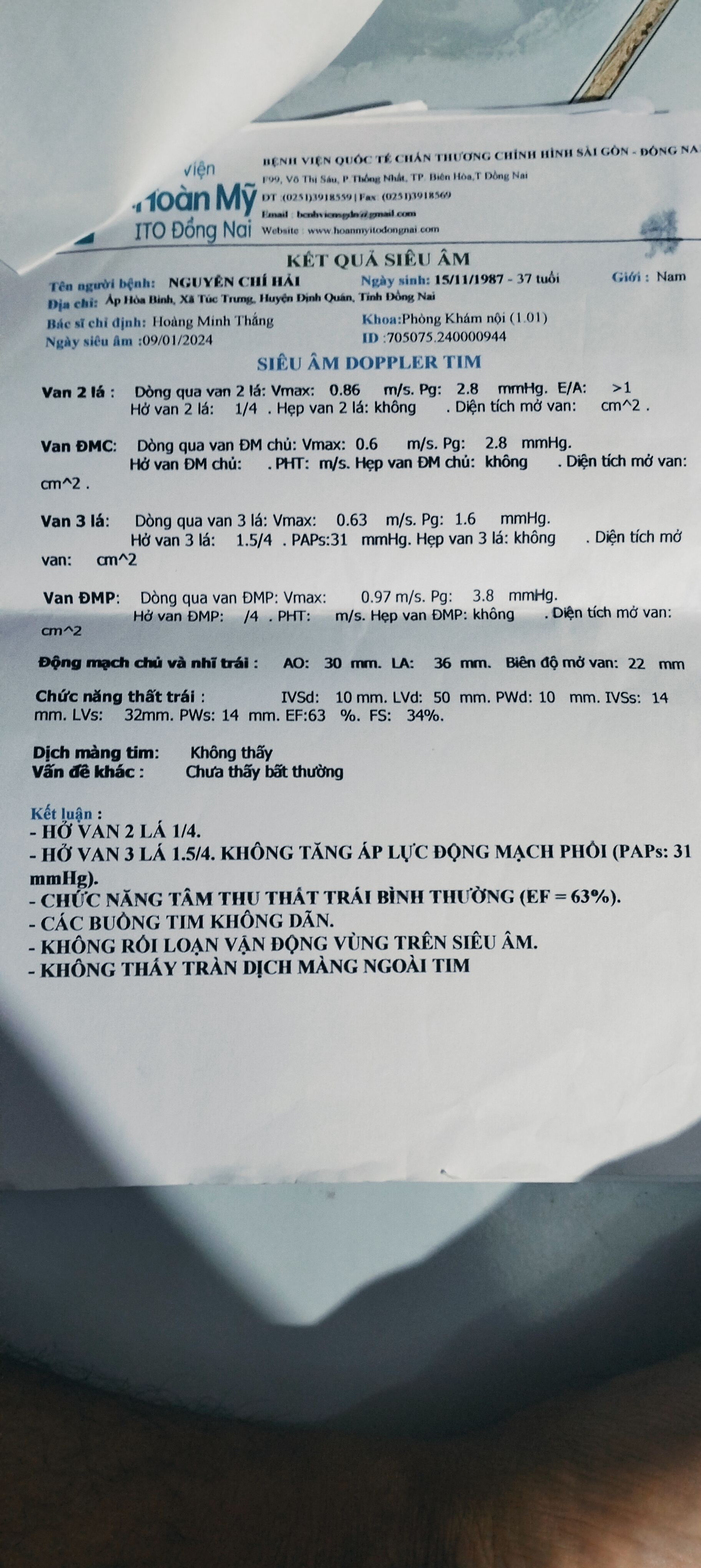 Kết quả bình thường. Có hở nhẹ van 3 lá.
