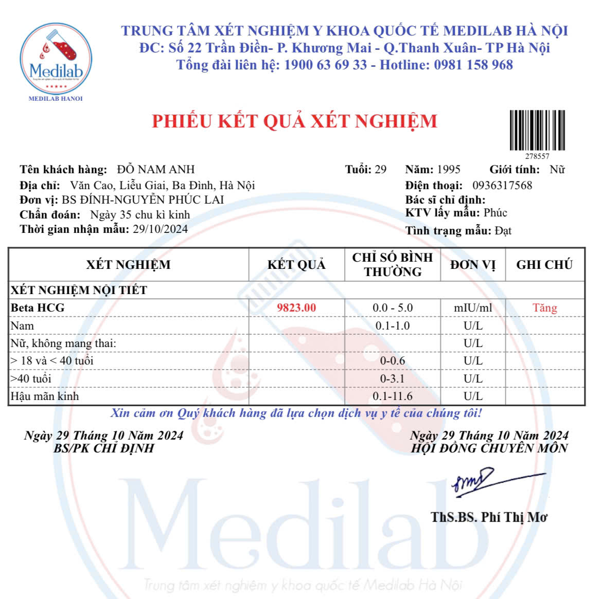 Nồng độ Beta HCG