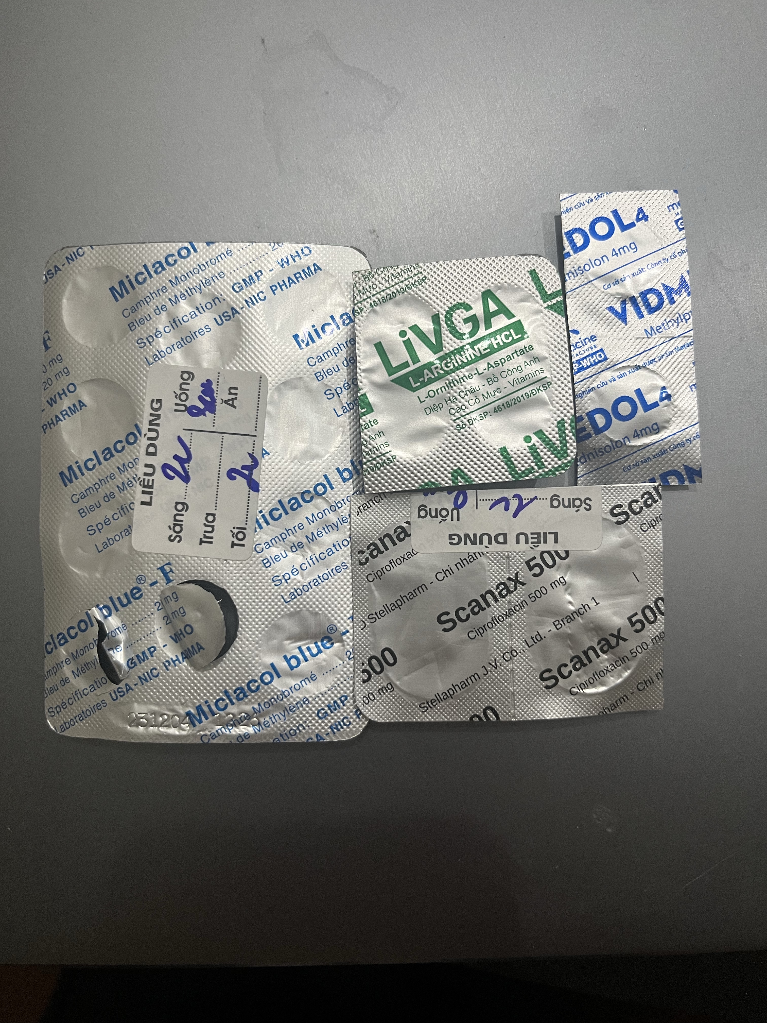 Em có triệu chứng là buồn đi tiểu ngay cả khi vừa đi xong, đặc biệt bị nhiều vào buổi đêm và khi nằm, có hôm em đã bị đi tiểu trong lúc ngủ. Đi tiểu không ra máu và cũng không buốt/ rát. Em ra hiệu thuốc và được kê 1 số thuốc như hình và uống trong vòng 5 ngày. Triệu chứng có giảm nhưng không hết hẳn. Hiện tại em muốn làm xét nghiệm nước tiểu nhưng vì uống Miclacol Blue nên nước tiểu màu xanh liệu có ảnh hưởng tới kết quả xét nghiệm không? (Em đang dừng thuốc 1 ngày thì vẫn có màu, mà em muốn đi khám sớm). Và em nên làm những xét nghiệm gì. Mong bác sĩ tư vấn ạ