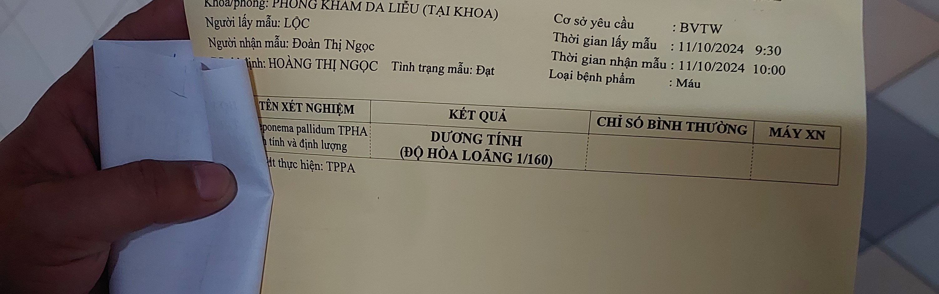 em gửi tờ phiếu xét nghiệm RPR. Thường sẽ tăng dần giai đoạn đầu và sau điều trị giảm dần về âm tính
