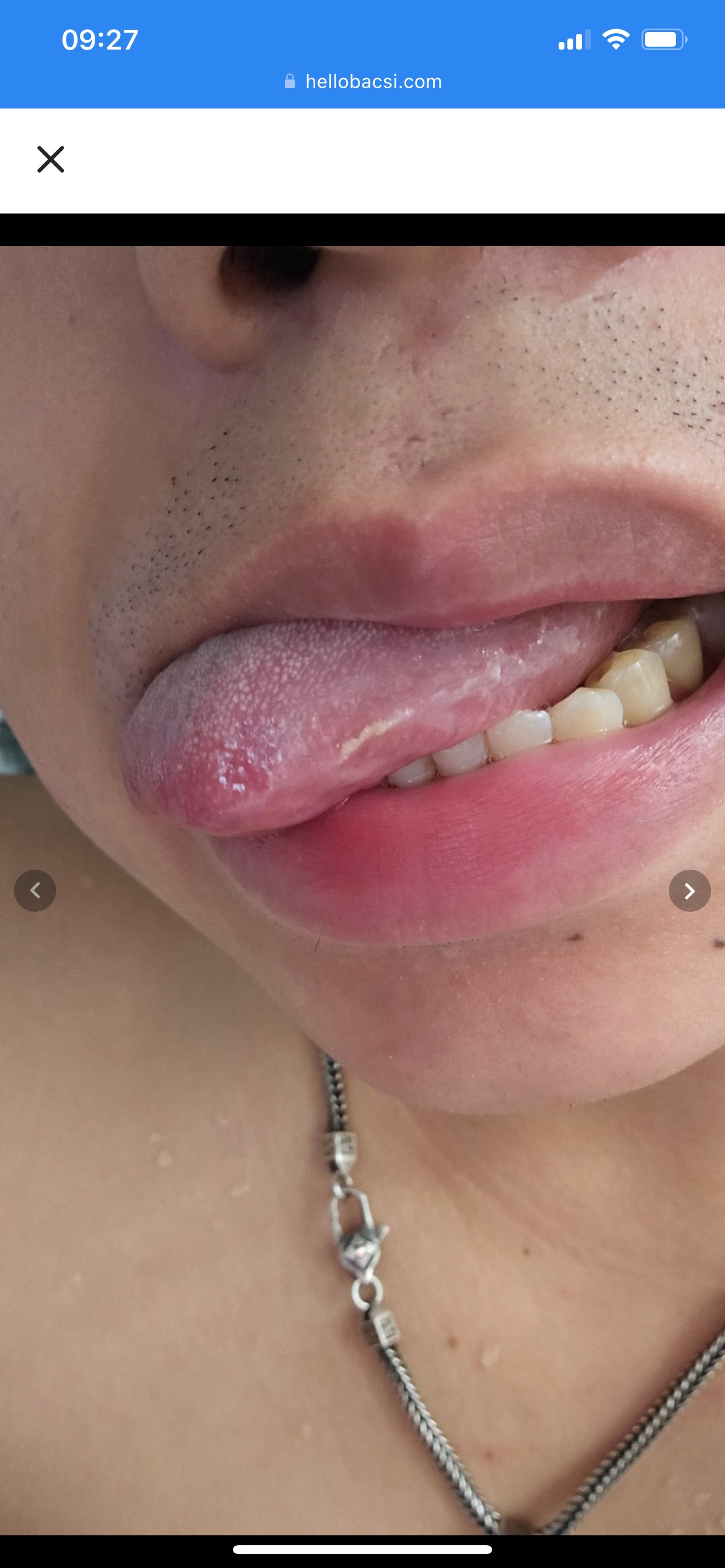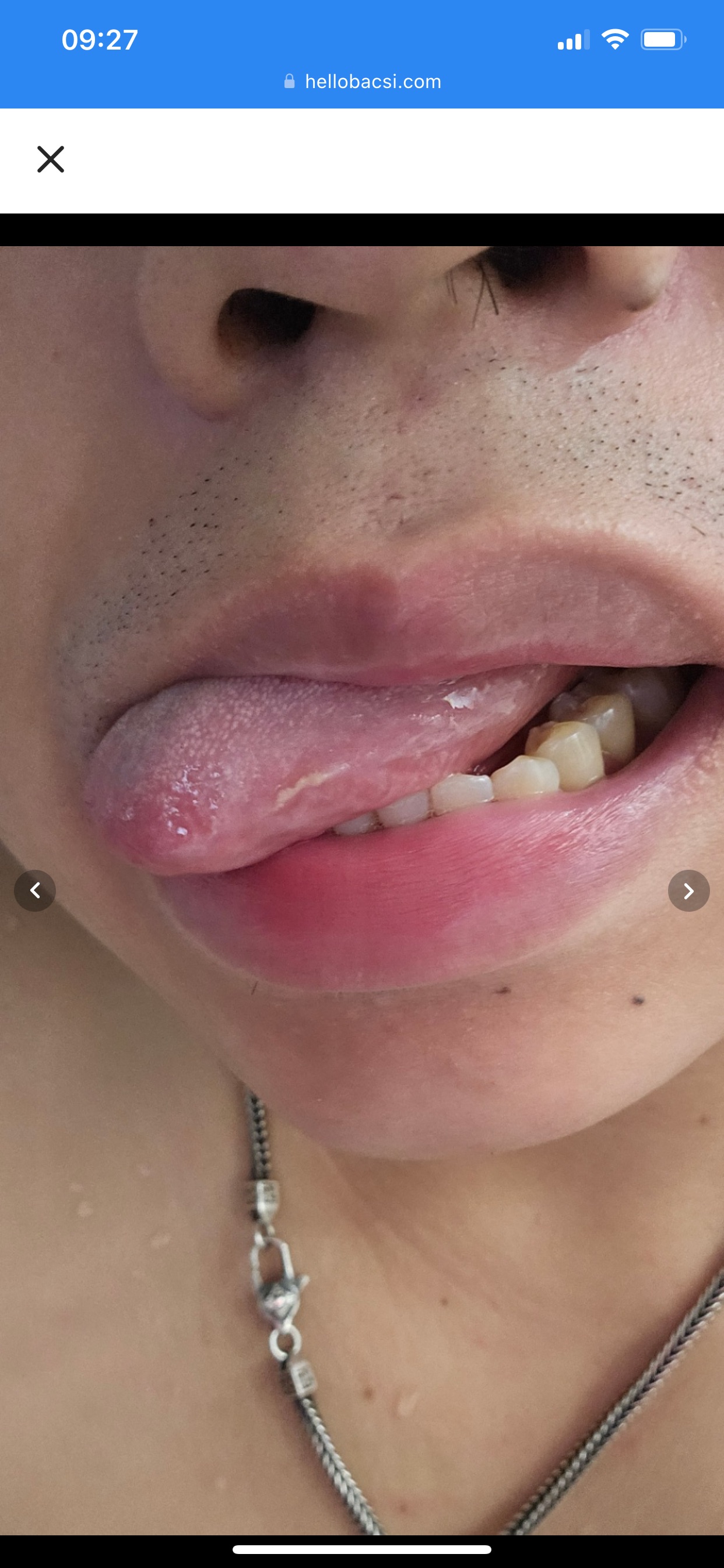 Sáng em ngủ dậy phát hiện lưỡi bị thế này, có vệt dài màu trắng hai bên lưỡi. Bác sỹ cho em hỏi là triệu chứng bệnh gì ạ :((
