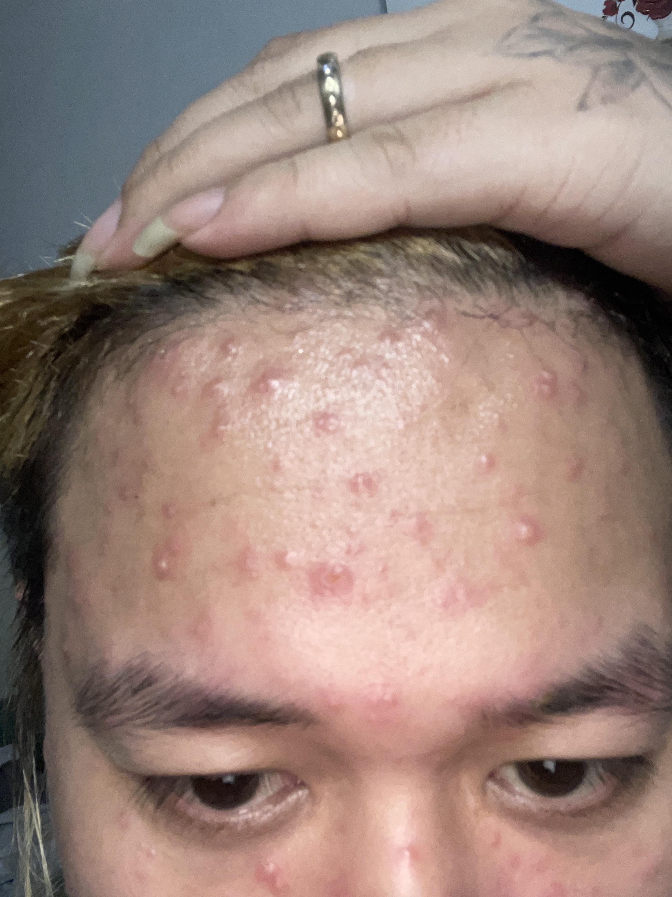 Nó nổi kín mặt, cả người , trên đâu Rất rát ạ. Nó nổi giống như bị bỏng mut nước ạ