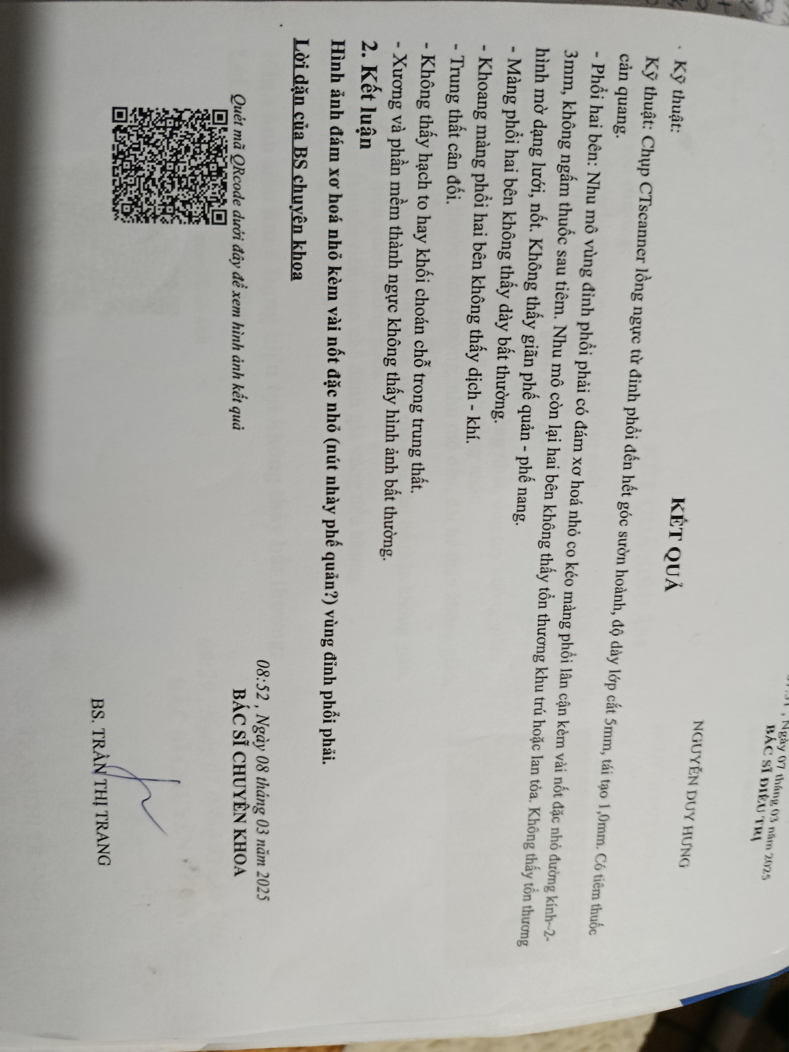 Chào bác sĩ. E điều trị xong lao phổi vào tháng 9 năm 2024. Giờ CT hình ảnh có đám sơ hoá nhỏ kèm vài nốt đặc nhỏ vùng đỉnh phổi. Giờ e có cần dùng thuốc hay làm xét nghiệm gì k ạ. Mong đc sự giúp đỡ của bác sĩ. Xin cảm ơn bác sĩ ạ