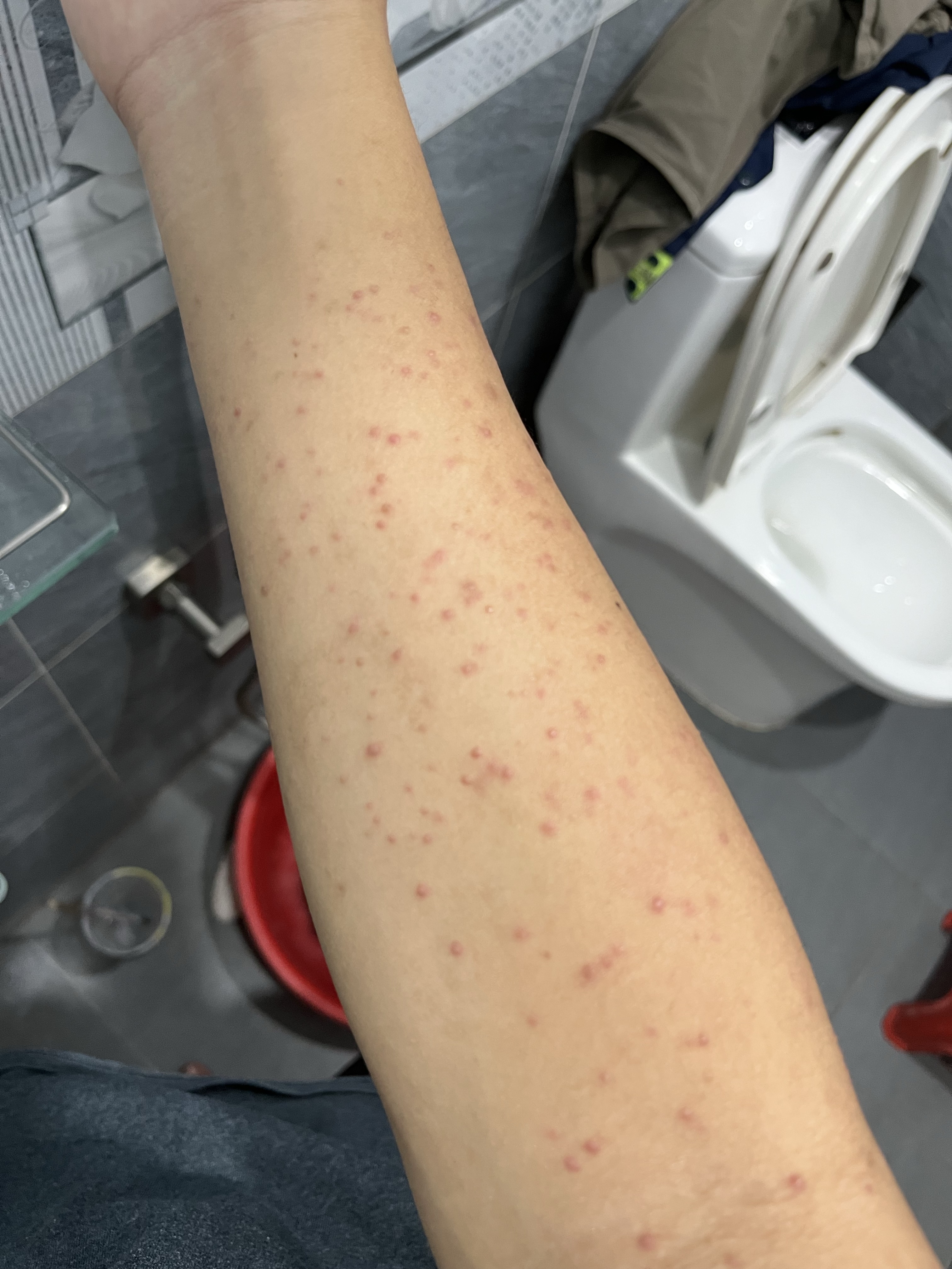 Chào bạn, này nhiều khả năng là dị ứng rồi, gần đây bạn có dùng sản phẩm gì mới lạ như sữa tắm dầu gội, hay có đi đâu xa tiếp xúc với bụi bẩn, chó mèo lạ không?