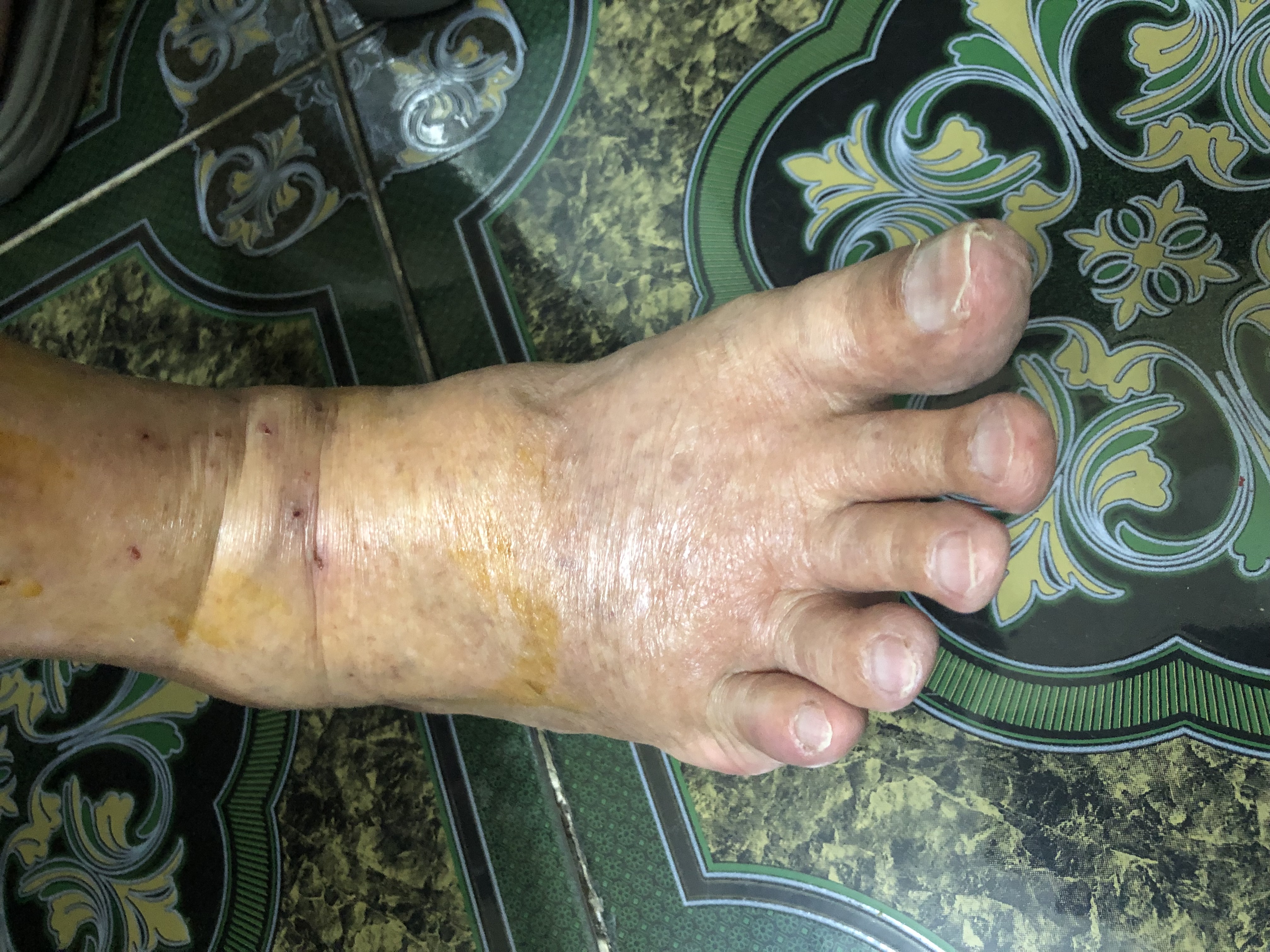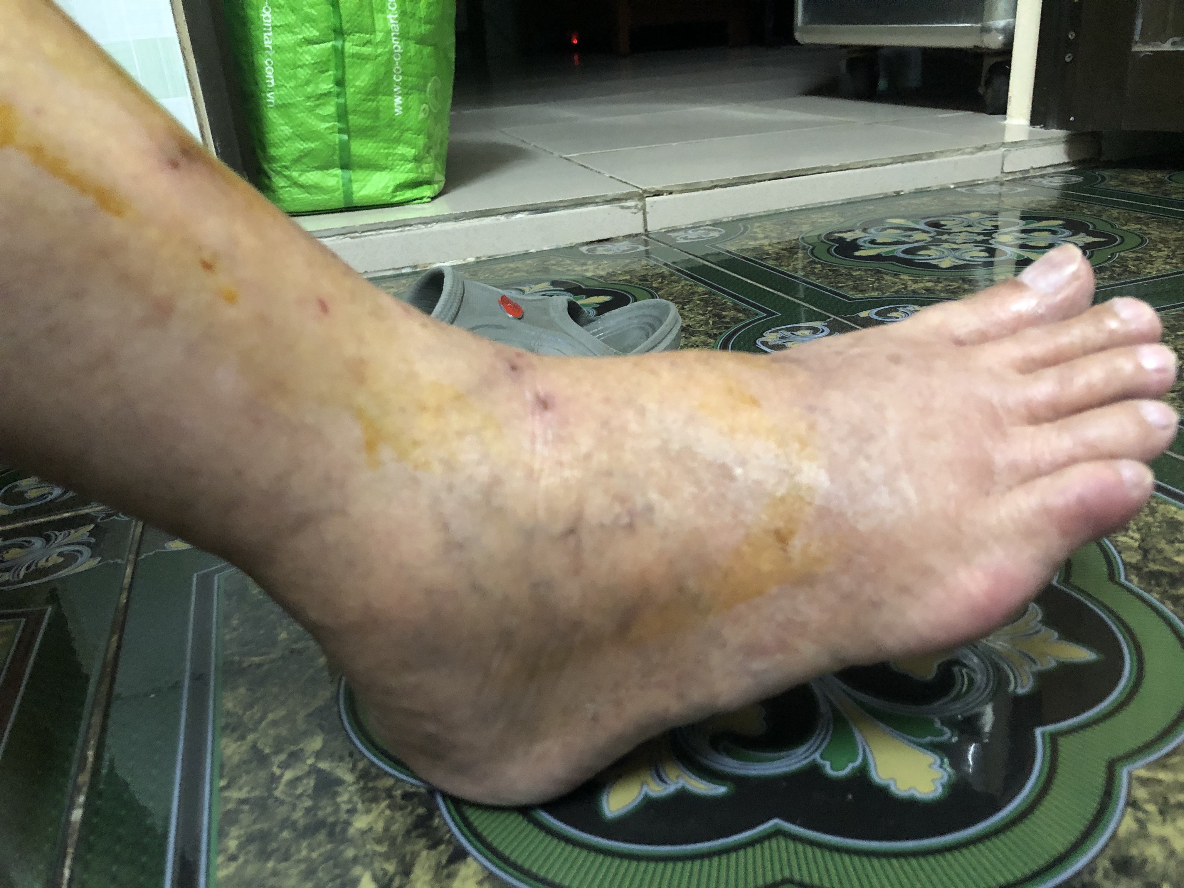 Chào bác sĩ Người nhà mình bị phù chân lên như này nhưng không đau nhức, lòng bàn chân không bị, đụng vào như có dịch bên trong. Trong 2 tháng gần đây có dùng thuốc Fluconazol + augmentine liên tục. Mong được bác sĩ tư vấn
