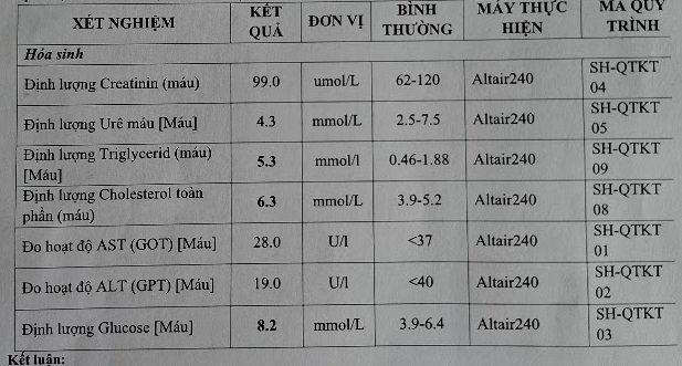 Cho em hỏi phiếu xét nghiệm sinh hóa này có kết luận được là tình trạng sức khỏe sao không ạ?