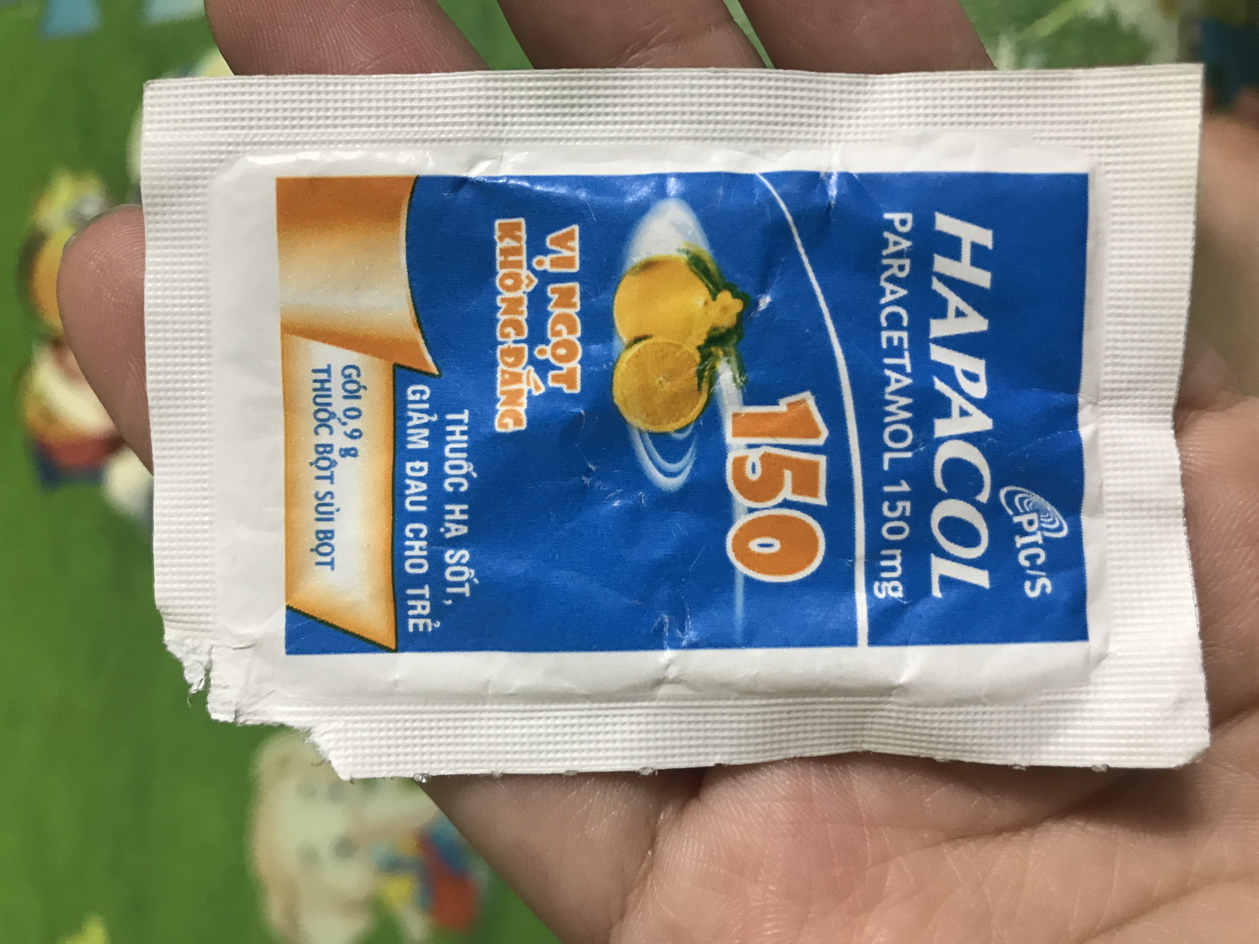 Bé 10 tháng nuốt phải vỏ gói thuốc Hapacol