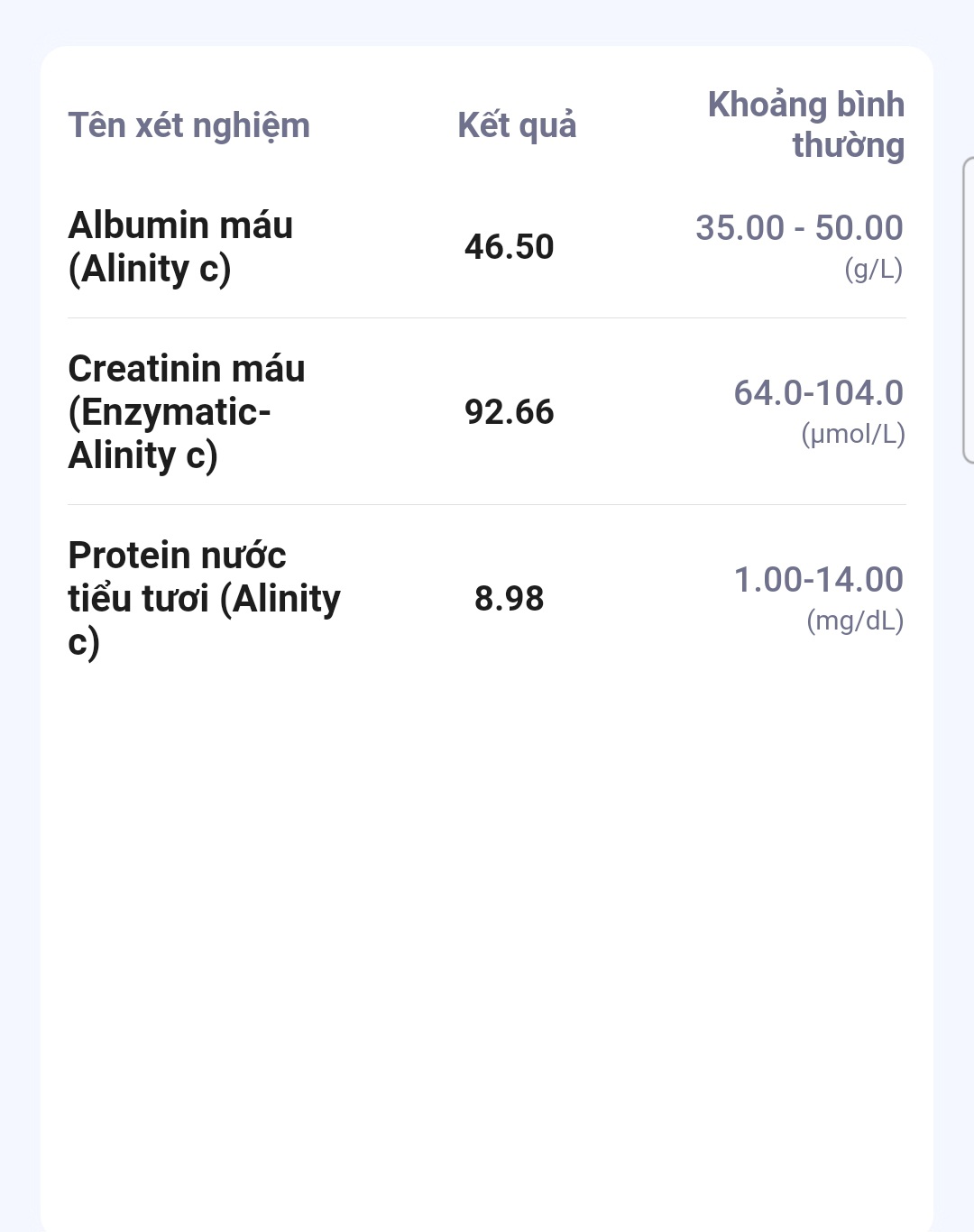 Em đi xét nghiệm máu và nước tiểu thì có chỉ số như thế kia, trước kia e đi xét nghiệm chỉ số protein niệu đều như vậy thì bác sĩ cho em hỏi thận em có vấn đề gì không ạ?