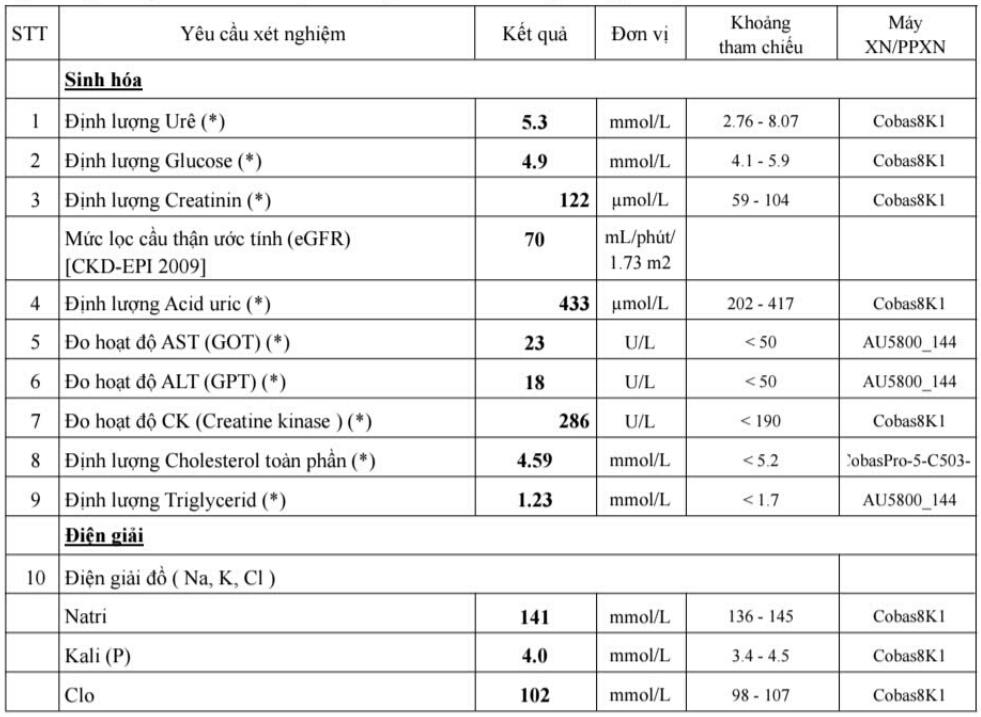Chào Bác sĩ, em là nam 25 tuổi, bình thường em tập tạ tại nhà vào thứ 2,4,6. Kết quả trong ảnh được đo vào ngày thứ 3. Bác sĩ cho em hỏi với chỉ số thế này thì thận của em có đang gặp vấn đề nghiêm trọng không ạ? Em cảm ơn bác sĩ!