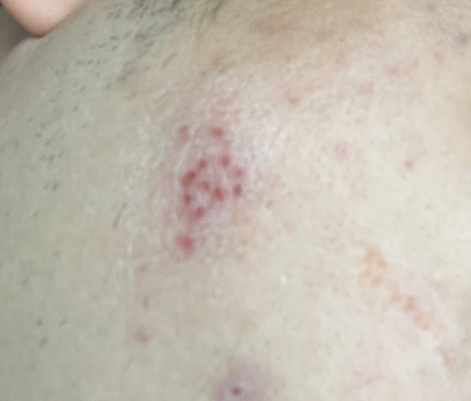 e có bị nổi mụn như trong ảnh ( k đau buốt hay ngứa gì ) có cảm giác như mụn viêm nhưng lại mọc thành nhiều nốt ở 1 chỗ nhờ bs tư vấn qua giúp e có nguy hiểm hay có triệu chứng của bệnh gì nguy hiểm k