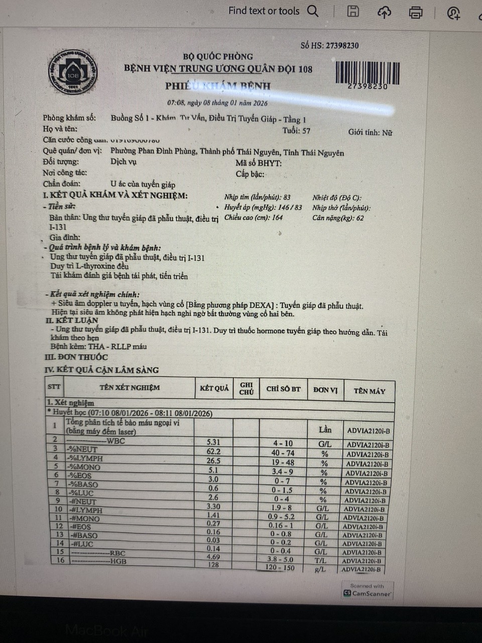 Tôi có tiền sử K tuyến giáp (đã cắt toàn phần, đang uống hormone). Kết quả xét nghiệm mới nhất TSH: 1,81; FT4: 15,4; Tg: 0,04. Một tháng trở lại đây tôi bắt đầu uống thuốc huyết áp, đang uống 1 viên Co-Vesin lúc 10h sáng, nhưng huyết áp buổi tối và sáng sớm vẫn thường cao (140/90 mmHg), kèm hồi hộp nhẹ. Hiện nay thường xuyên bị nóng bừng, vã mồ hôi nhiều lần trong ngày (mỗi lần 2-3 phút). Nhờ bác sĩ tư vấn điều chỉnh thuốc huyết áp loại nào và giờ uống nào là hợp lý