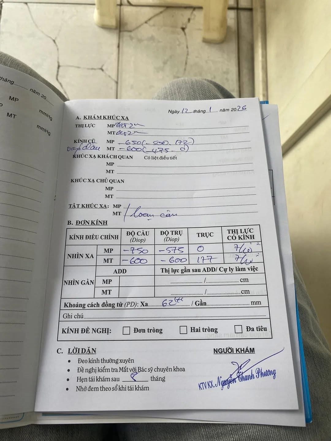 Thưa bác sĩ con vừa đi đo mắt tại bệnh viện TP HCM về mà sau khi đeo thử con nhận thấy có một vài vấn đề nhờ bác sĩ coi kiểm tra giúp con ạ Mắt bên trái con nhìn xa rất nét nhưng khi nhìn gần con lại cảm thấy hơi nhức và mỏi mắt ạ Mắt bên phải con nhìn xa bị mờ hơn hẳn so với mắt trái ạ Về tròng kính con thấy vùng nhìn rõ trên kính rất ít con phải liếc mắt hoặc xoay nhẹ đầu để tìm chỗ rõ trên kính thì mới thấy rõ được như mắt trái còn lại phần lớn diện tích trên kính nhìn đều bị mờ hơn mắt còn lại ạ