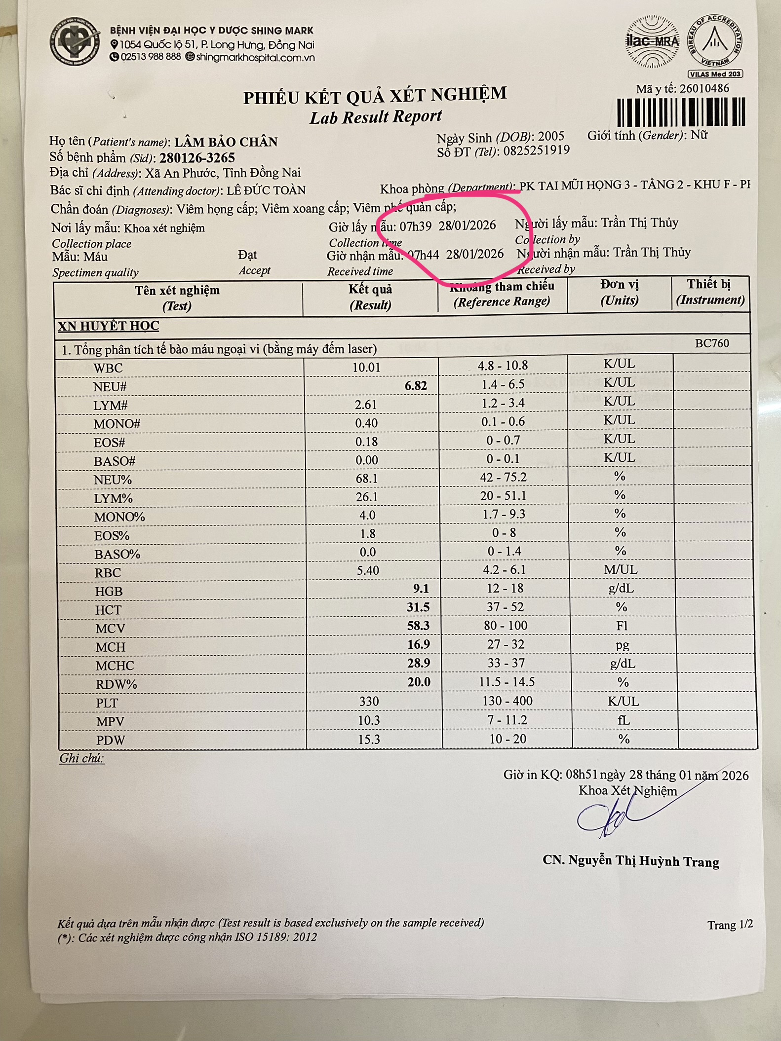 Em bị alpha thalesima , khoản lâu lâu em làm xét nghiệm máu 1 lần, như xét nhiệm máu trong ảnh em cần làm gì để hạn chế vậy bác, em cần bổ sung thêm gì ko?, em định uống bổ sung axit folic đơn thuần đc ko bác sĩ? Em cảm ơn ạ