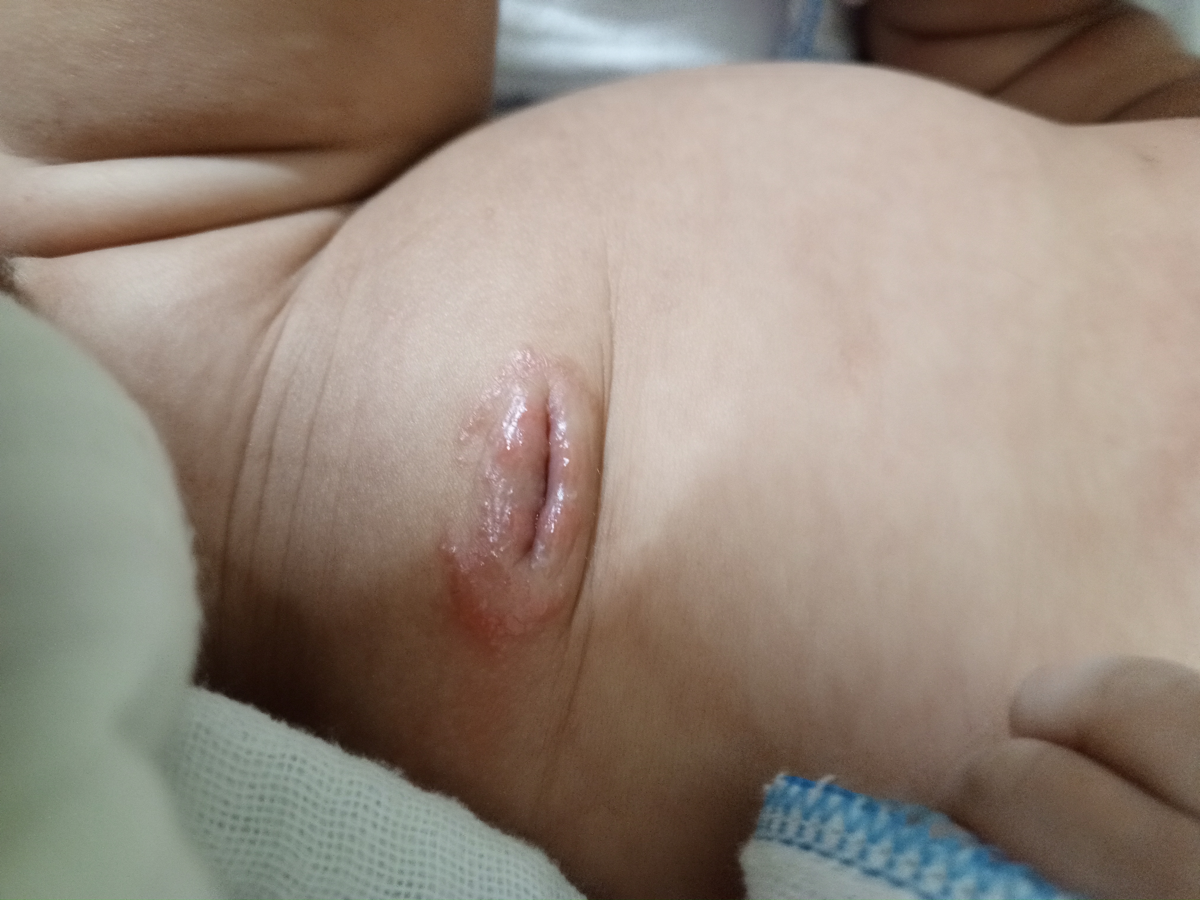 Viêm da cơ địa ở trẻ 2 tháng thì ít gặp ở rốn. Xung quanh rốn nhìn hơi nề nên chưa loại trừ được viêm rốn. Bạn nên đưa bé đi khám nhé