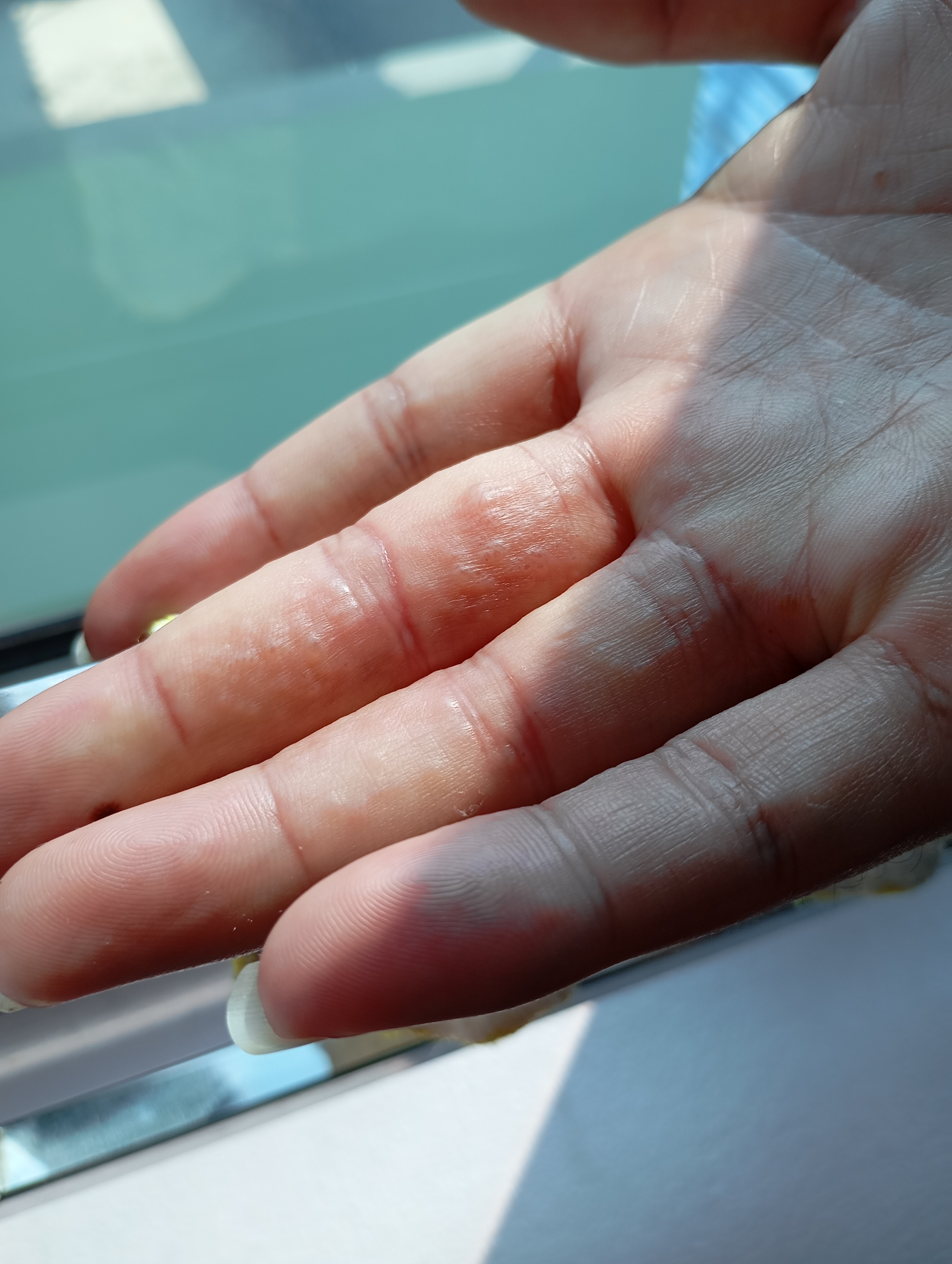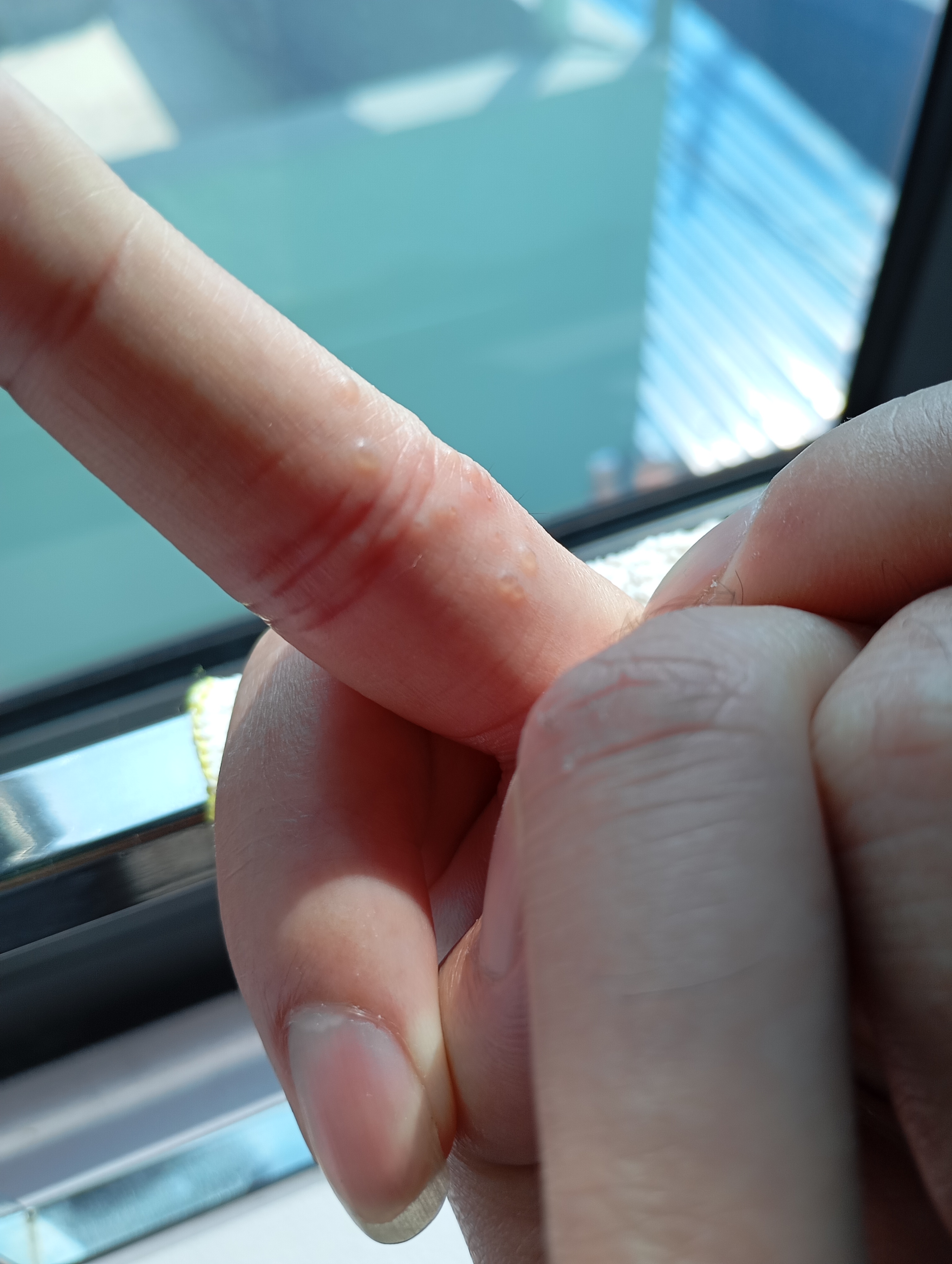 Chào bác sĩ.Mấy hôm trước e có bị đứt tay nên e có xịt cồn sát khuẩn .hôm sau tự nhiên tay e lên rất nhiều mụn nước và ngứa .Bác sĩ xem giúp e với ạ.Em cảm ơn ạ