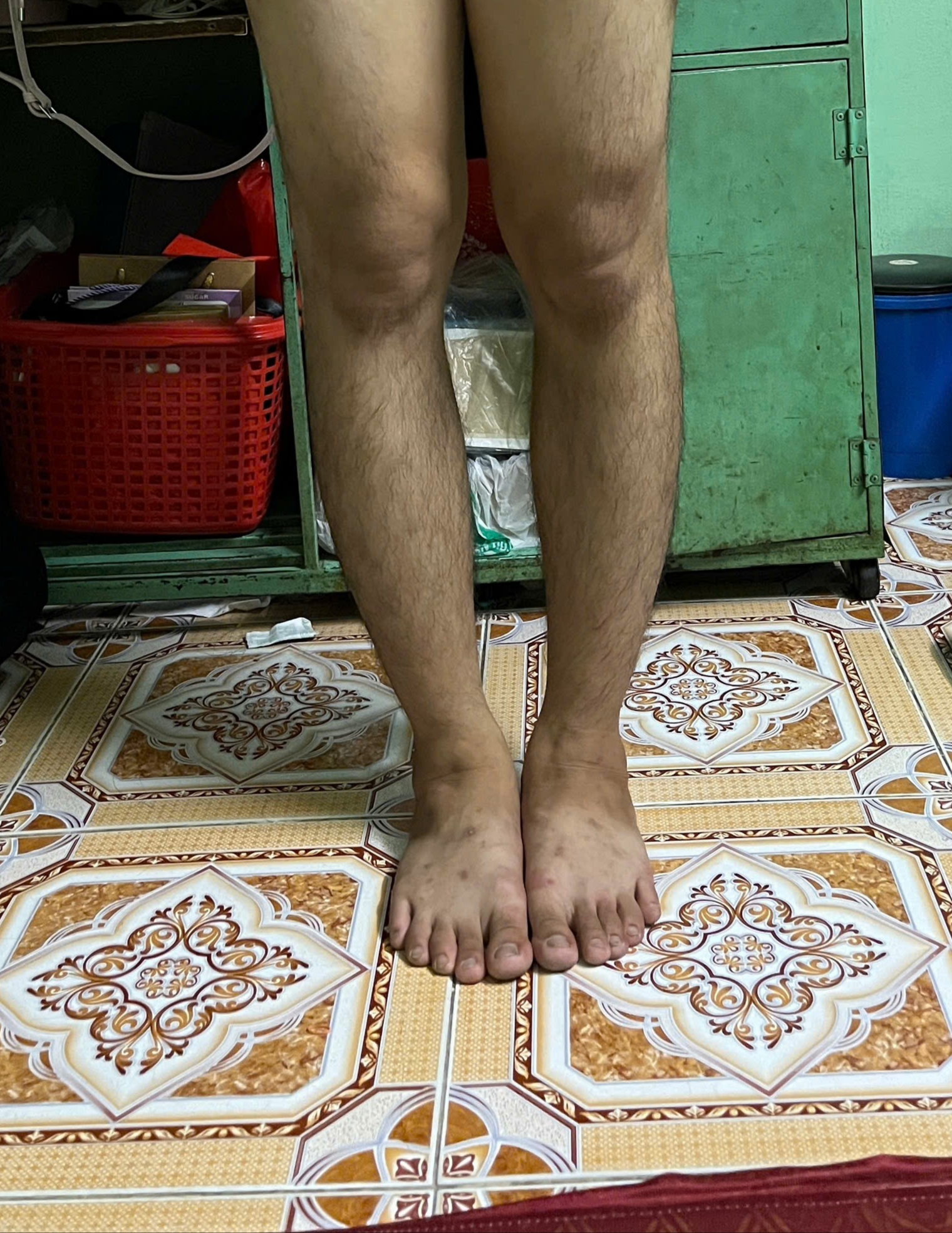 Dạ chân em đi đứng lâu và nhiều thì bị đau bàn chân và mỏi chân ạ. Không biết theo ảnh chụp chân em có gọi là chân vòng kiềng không ạ bác sĩ