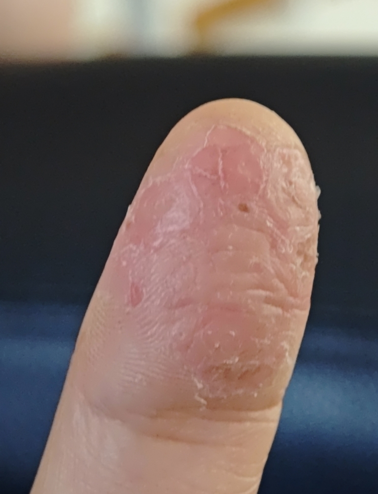 Cháu bị bong tróc da tay cả 10 ngón. Cháu hay tiếp xúc với thùng cartoon nên cháu nghĩ thùng cartoon chứa hoá chất gây bong tróc. Hoặc là cháu thay đổi môi trường, nguồn nước. Cháu đi Long Châu mua thuốc bôi dưỡng da tay thì họ khuyên uống C sủi. Cháu muốn hỏi bác cháu nên làm gì để đỡ vì mỗi lần cháu mở cửa nhà bằng vân tay cháu đều mất cả nửa tiếng không nhận