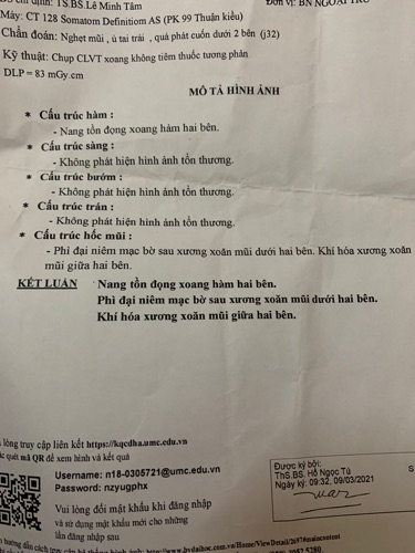 Chào bác sĩ! Em muốn hỏi bác sĩ: em bị viêm xoang mạn tính + quá phát cuốn dưới 2 bên đã uống rất nhiều thuốc mà không khỏi. Hiện tại em bị nghẹt mũi k thể thở được, đau nhức trán, hốc mắt, ù tai, dịch chảy xuống họng gây viêm họng. Đêm ngủ há miệng thở. Hiện tại đang cho con bú và bị dị ứng các loại thuốc giảm đau có chứa Para. Xin bác sĩ tư vấn giúp em. Chất lượng cuộc sống của em giảm 50% luôn ạ. Rất khổ sở.