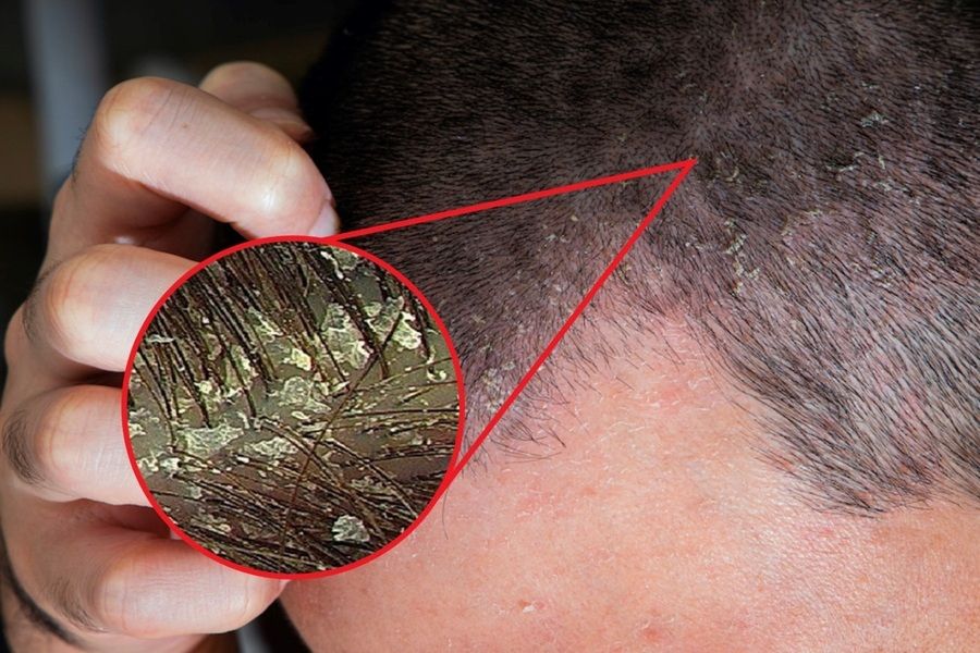 Da đầu bong mảng lớn như gàu, kèm ngứa rát dữ dội, lan rộng toàn bộ da đầu